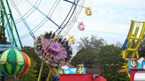 | 春に来た時に乗ってみたい! と狙っていた「ディスクオー」に挑戦です。動画でないとわからないのですが、円盤が回転しながら上向きの円弧の上を往復します。 他の方の撮影ですがこちらに動画があります。 遊具には年齢や身長制限があり、小学生以上や120cmといったものがほとんど。 さらに…上限年齢が設定されているものが3種類。 この秋も楽しくすごせました。 |