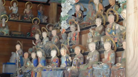 | 善寶寺は五重塔や五百羅漢が何度見ても素晴らしいところです。建設が明治時代と比較的新しいのと費用もかけてあるらしく、微細なところまで造りこんであり、劣化もあまり進んでいません。 五百羅漢は復活再生プロジェクトが進んでいるようです。 | |