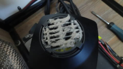 移設のついでに、これまで4年間点検していなかった、ヒーターの吸気口を点検しました。外してみてびっくり。左写真のような状態で、燃焼効率も悪そうで、下手をすると火災になりかねません。ファンの羽根と一緒に清掃しました。 | |