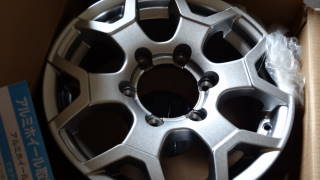 | 選んだホイールは、マルカサービスというあまり聞いたことの無い(失礼)ブランドですが、ユーロデザイン・シューティングライダーという製品でJWL-Tで990kg対応のものです。前のウィンズナーは購入時には990kgとの説明でしたが、鋳出文字は955kgになっていてグレーゾーンでした。今回は大丈夫そうです。ウィンズナーの表面はアルミ合金の削り出しでしたので、艶は良いのですが、ナメクジなどが汚れを食べて這い回ると、その跡(多分消化液の酸)が付いたりすることがありました。今回は地金の色ではなく塗膜による色のようです。 | |||