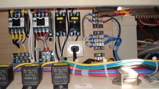 | まず、サブバッテリーの他の充電方法はうまく機能するのかどうか調査しました。結果、ソーラー・外部100V電源ともうまく作動しています。 またエンジンからの充電を含めて、3つの充電方法は、排他的に択一されなければなりません。 ソーラーは日中は常時発電できる状態になっていますが、エンジンがかかった時にはIGN信号の端子台(右写真の下側、赤2本・茶1本)に電圧が来ますので、それを拾って充電混触しないようにカットする構成としてあります。その機能もうまく行っています・・・ということは、エンジンからの発電がなされていることは、2ndシート下の端子版で検知しているのに、充電に至る主回路のリレーが作動していないということになります。 |