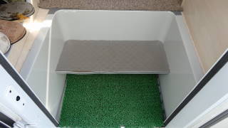 バンクベッドのサイズ変更などは無さそうですが、物置として使用した場合によく物が落ちてきて困っていました。そのためのネットと固定ベルトが装備されています。 ベッドを中間引き出し位置で固定したい場合の仕組みが無かったので、紐をフックにかけて固定するようにしました。 マルチルームについてです。これまでカセットトイレを使用してきました。ブラックタンクの着脱が片手で楽にできるのは良かったのですが、室内スペースをかなり占領するのと、外部から物を出し入れする際にじゃまで、大きな物を車外から入れることができません。価格面でも9万円弱は負担です。前車でもそれはわかっていてレスで発注したのですが、販売側の手続きミスで無料でカセットトイレが付いてきたので、それを使用してきた経過がありました。 さて今回はポータブルトイレの未使用が付いてきましたので早速初使用してみました。使い心地は遜色ありません。後始末の際に若干着脱の手間が増えますがスペース・価格面の利点があるので総合的にはこちらのほうが良いかと思います。故障時にも気楽に買い替えができます。(後日買い替え済み) |