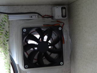 | 室内側には前回の経験をいかしてやや大きめのファンを取り付けます。換気係数を考えてあまり能力が大きすぎてうるさくないものにします。スイッチは百均にあるものを改造しました。 室外からの逆流を防止するために、一方向だけに流れるフラップを自作します。これも百均で適当な大きさと構造の食品容器を用意します。前車ではフタの部分にフラップを付けましたが、今回は容器底の部分に付けます。フラップの材料は当初透明な書類はさみケースを切りましたが、換気ファンが微圧のために動かず、写真印画紙を入れる袋を使用しました。 |