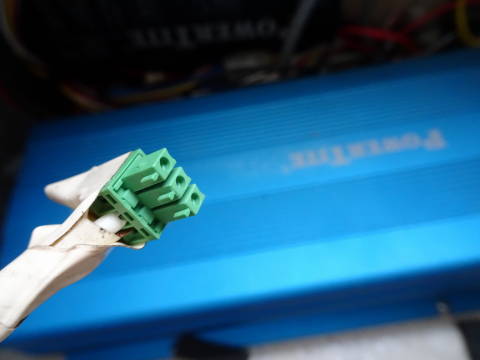 | 左上写真の、赤い電線が繋がった二つの端子(左がメインバッテリー側、右がサブ同側)の間をつなぐのが、このリレーの役割です。そのための信号はリレー本体の左下の端子(左の写真参照)に来ます。もう一本アースにも接続されていますが右下側にあるのでこれらの写真では観察できません。 | ||