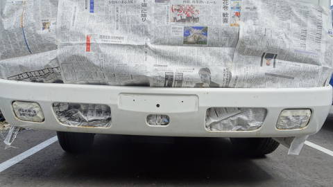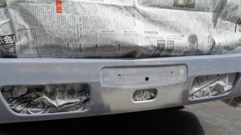 | 遠目には目立たないし、バンパーの地金まで錆が及んでいるわけではないのですが、近くで見るとポツポツと結構なさびが出ています。もらい錆かもしれませんし、進行を止めるための防食剤で覆っては有りますが、見栄えも少しは気にして、塗装を行いました。 | ||