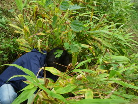 落ちたものの方が熟れています。 藪にもぐって採っているのは茗荷です。