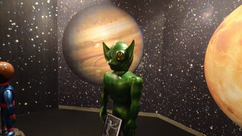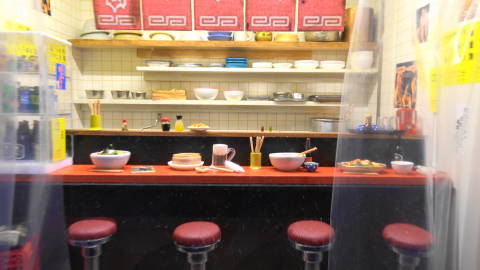| 宇宙基地・山岳集落の風景・商店の内部・空港などが、迫真の質感で迫ります。空港では各機が日照や背景の変化とともに移動して、離陸・着陸を繰り返しています。 パン屋さんやラーメン店もこのまま大きくしたら迷い込みそうです。 東京にも新しい見学スポットが次々に出来ていて、おのぼりさんとしては(ほんの一時期住んでいたことはあるのですが)たっぷり楽しむことができました。 |