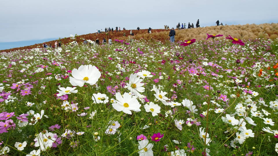 これまで春のネモフィラシーズンしか見たことのなかった、ひたち海浜公園のみはらしの丘です。秋にはコキアで丘が彩られます。 二日連続で訪問しました。入場料は1日券と50円差なので、別々に買うより相当オトクでした。 11月に入って見頃のピークは過ぎたそうですが、コスモスも周辺に映えて、お客さんがたくさん来ていました。 このあと11月4日からはコキアは抜き取られて、来春のネモフィラに向けた整備が始まるそうです。 |