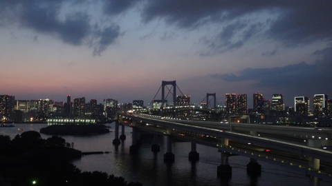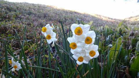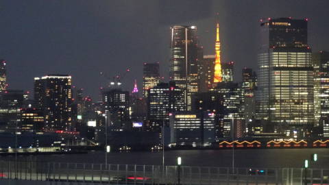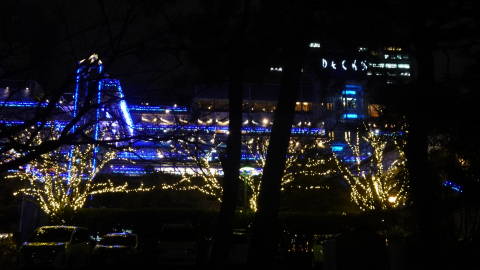 | お宿からはレインボーブリッジが良く見えます。陽が暮れると東京タワーも浮かび上がります。夜の散歩をすると、木々の向こうに不夜城のようにアクアシティのイルミネーションが映えます。 岩手よりはだいぶ暖かいので水仙が咲き始めています。 |