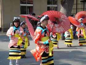 行列に参加したのは総勢70余名。当町内会の主催で、世代間交流ということで小中学生の踊り手が主体です。