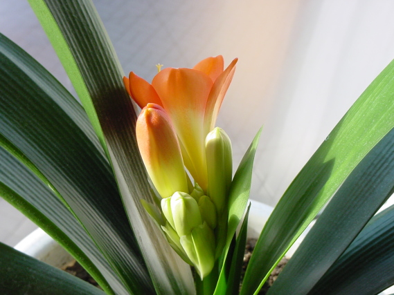 3年ほど前から置いている君子蘭が咲き始めました。 10日あまりの間にどんどん花芽が伸びて