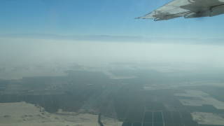 | ← クリックで動画 ピスコの空港から地上絵のあるナスカ平原までは40分近く飛んで行きます。砂漠に繋がる丘陵地帯とさらにその奥のアンデス山脈までが見渡せます。 ちょうど18人の参加者が一機に乗ることができました。 |