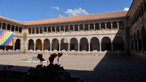 クスコ市内で最初に向かったのはサントドミンゴ教会です。次の日が夏至でインティライミ(太陽の祭り)の準備や踊りの練習をしていて、教会の前のサグラド庭園で走り回っています。 中のようすなどはこちら「クスコの町とサントドミンゴ教会」の動画をご覧ください 教会の礎石の黒い部分はインカ時代のもので、その上はスペイン占領時代のものだそうです。強固で精密なつくりなので壊して作り直すことをあきらめて、上部にやや雑なつくりの教会が設置してあります。左下写真ROで同城壁内部。ダニエルさんと(私の)妻です。 |