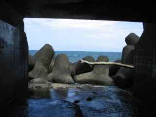 カロリーメイトを食べてくれたカメさん。 足から水面までは距離があるので、カメの大きさが・・・