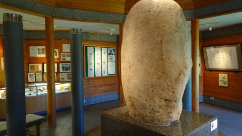 | 七戸のお祭りの山車が建物の中に展示してあります。余談ですが、青森と岩手に跨って、一戸から九戸までの地名が散在します。(四戸だけはありません) 1・2・9は岩手で、3・5・7・8は青森です。10は遠野(岩手)という話もあります。 日本中央の碑保存館 という所も見学します。一応説明を読むのですが、よくわかりませんでした。 |