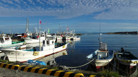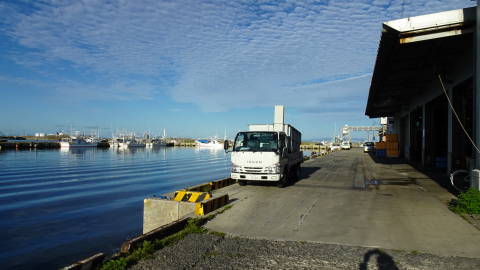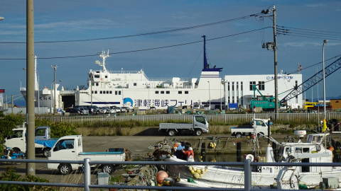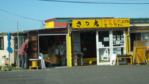 | 朝ごはんの前に漁協やフェリーターミナルなど海岸沿いを見学します。いつかまたここから北海道へ渡ってゆっくり一周してみたいものです。 せっかくここへ来たのでまぐろをいただきたいです。でも観光客向けであまり早くから開いているお店は少なくて、キャンプ場近くにある「さつ丸」さんが8時開店のようですのでそこでの朝食を予定します。 |