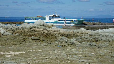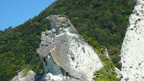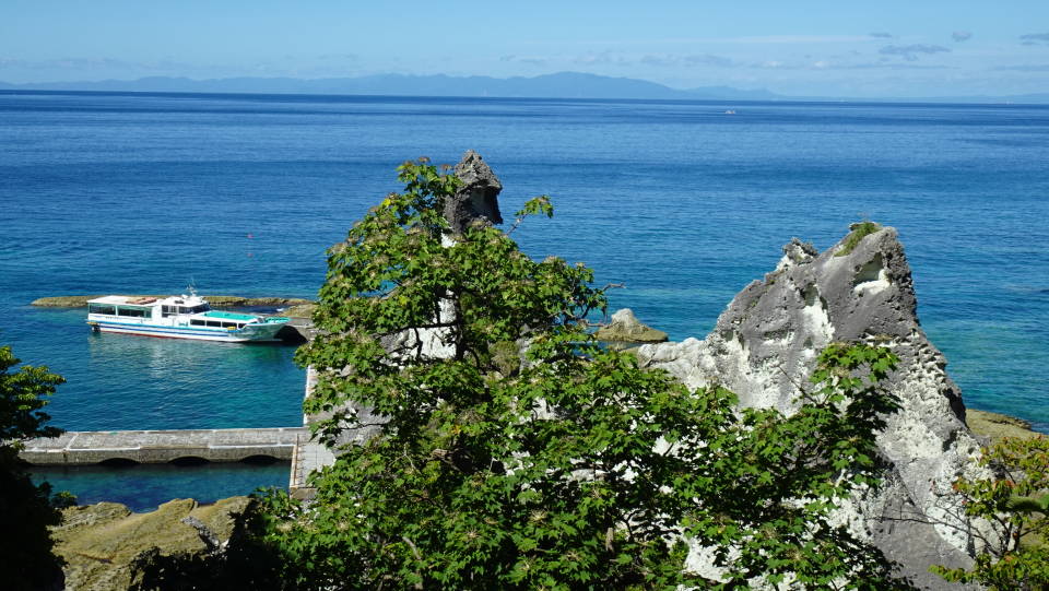 | 途中で近くの港からやってきた遊覧船が着岸して、沢山のお客さんが下りてきました。気軽に景観を楽しむにはこれが一番かもしれません。 洋上からの景観も以前見たことがありますが、その時はこの船着き場から発着する船がありましたので、ハイシーズンだけでも復活してほしいものです。 3D写真でも散策ルートをお楽しみください。 右下写真では手前の岩がマイタケみたいな形であることがわかるかと思います。3Dの見方はこちらからどうぞ。 |