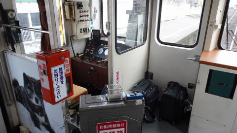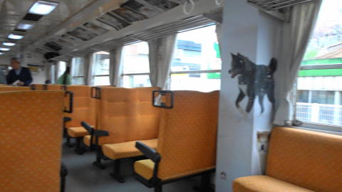 | 折り返し発車の20分ほど前に到着しますが、車内準備のためしばらく乗車を待ちます。 私たちの他にも中年男性数人のグループが、鷹巣まで行くようで乗車しました。 車両は昭和63年製のようで、懐かしい感じいっぱいです。 |