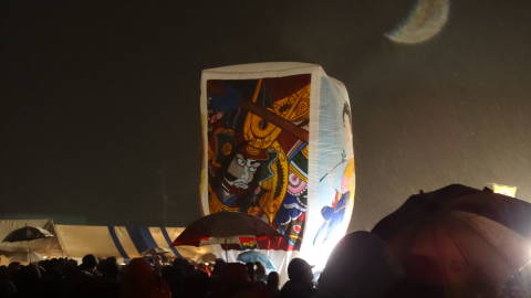 ですがこの時には1日違いで上桧木内での日程が合わず、祭りの後の昼の会場(左上写真)を横目に通り過ぎ、鷹巣を経由して鹿角市道の駅にやってきました。そこでは紙風船の出張実演が行われていました。私たちも参加して一緒に飛び上がる風船に触れて、何かわかりませんが感謝とお願いをしたのでした。 それは… 3月11日の一か月前だったのです。 |