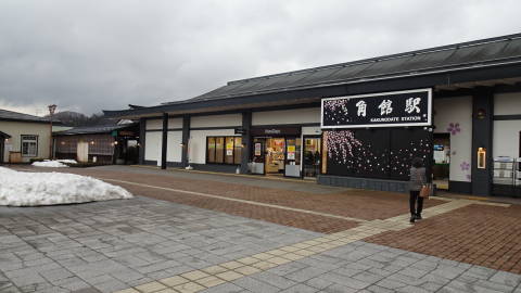 | 乗車区間は、列車ダイヤとにらめっこしながら、往復区間を選びます。決まったのは角館駅から阿仁合駅までで、阿仁合では90分近く散策時間が取れそうです。 JRの角館駅は目立つのですが、秋田内陸縦貫鉄道の角館駅はその隣にありました。 |
