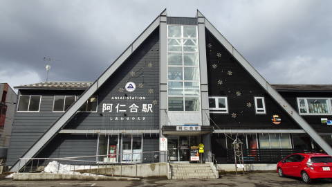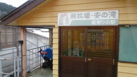 楽しんでいるうちに今日の目的地の阿仁合につきました。車で来たことは何度かありますが、列車では初めてです。駅舎へはホームから線路を渡りますが、向こうから列車がやってきました。どちらに分岐するかわからないので見守っていましたが、左にそれて、右の駅舎へは無事にたどりつきました。 | |