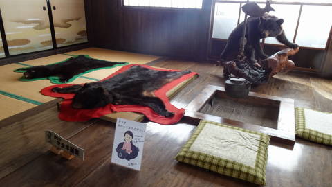 早い時間から開館していた「内陸線資料館」(無料・無人)を見学します。この鉄道は北の鷹巣からと、南の角館からの路線を繋げて完成したもので、地域の方々の熱意が伝わってきます。 マタギとクマの皮の展示もあって、座れそうですが少し怖いです | |