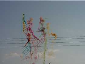 | 場所取り(自由席の確保) 地図上で説明するとわかりやすいのですが、適当な尺度や文字の大きさのものが無いので、手元に地図を用意なされた上でお読みください。 観覧会場はご存知のとおり雄物川河川敷の右岸(東側)、大曲橋から姫神橋の間です。昨年(第80回)から当日以前の場所取りはできなくなりました。開放する時間帯も昨年は午前5時でしたが、今年は午前7時です。河川敷きへ降りる階段が7箇所設定されていて、姫神橋寄りが7番、大曲橋寄りが1番です。7時に場所取り開放されるのは、まず7番とのことです。その後順次1番に向かって開けて行くという現場警備担当の方の説明でした。6時頃に自転車で向かったのですが、堤防上は自転車乗り入れ禁止になっています。7時までまだ時間があるので一度戻って8時半頃に、今度は回りこんで大曲小学校の方から自転車で近づいて、堤防近くに自転車を置いて、会場に向かいました。8時30分からは堤防上を歩行者も縦方向(川の流れに沿って)歩くのは禁止されて(緊急車両用に確保のため)いますが、各入り口から横断する分には通行できます。4番階段もすでに開放されていて大部分が場所取り完了していましたが、なんとかそこそこ4.5畳くらいのシートを敷くスペースをGETできました。 次回も同条件であれば、7時半〜8時頃にくればまあまあの席が取れるかもしれません。 |